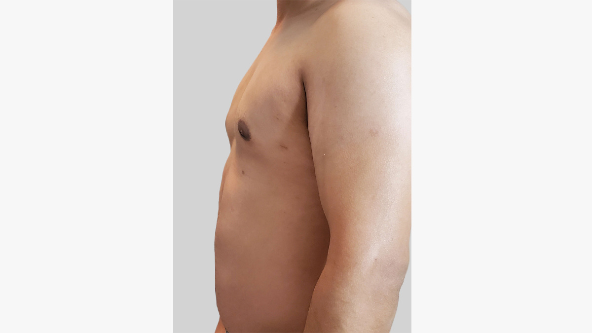 Despite being physically fit, this patient’s experience with gynecomastia (excess male breast tissue) could not be resolved with exercise. Using liposuction and excision, we achieved the more balanced appearance you see here.