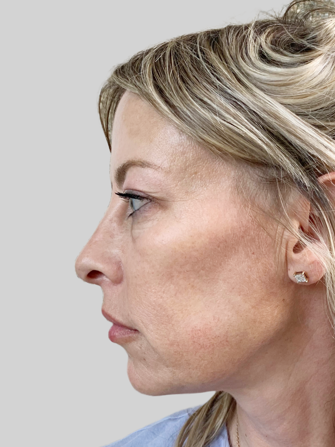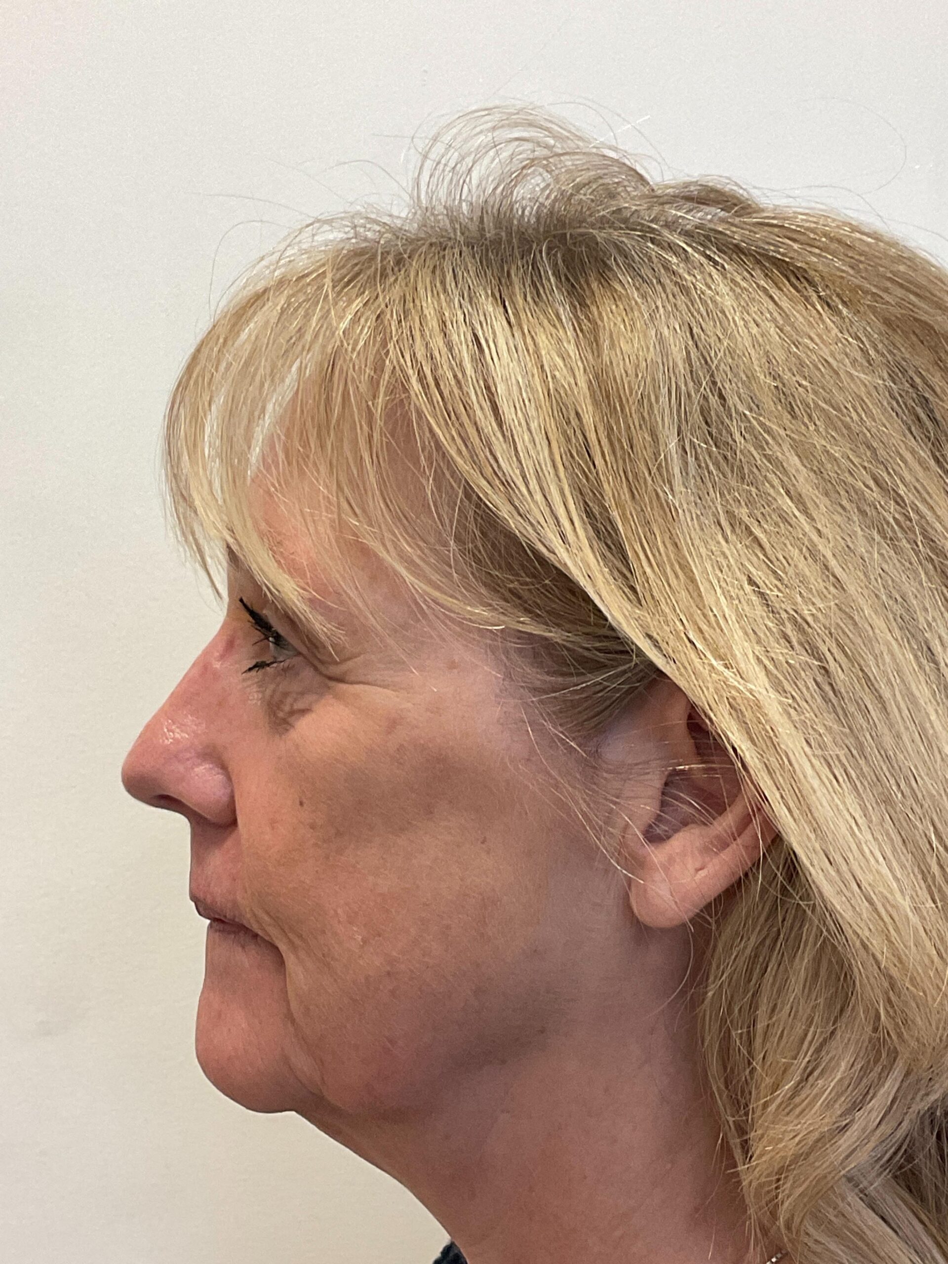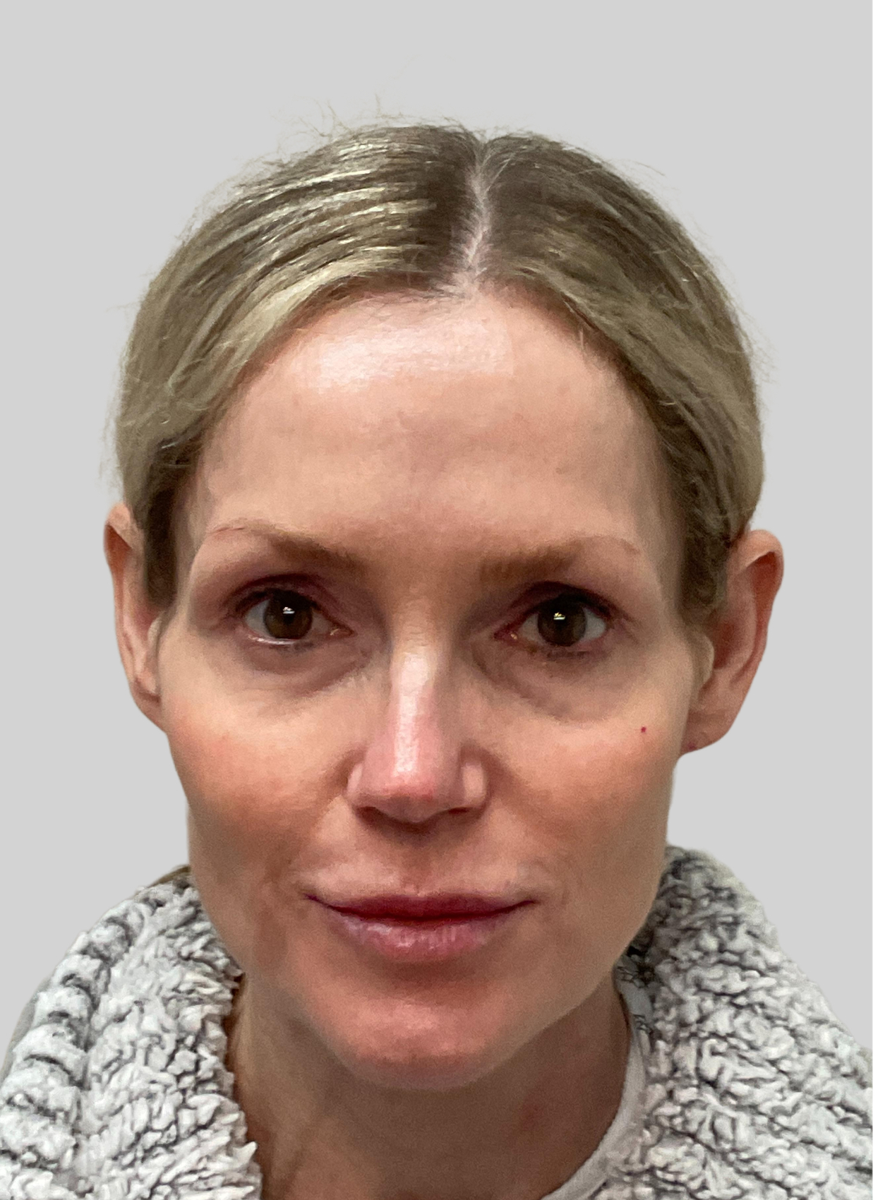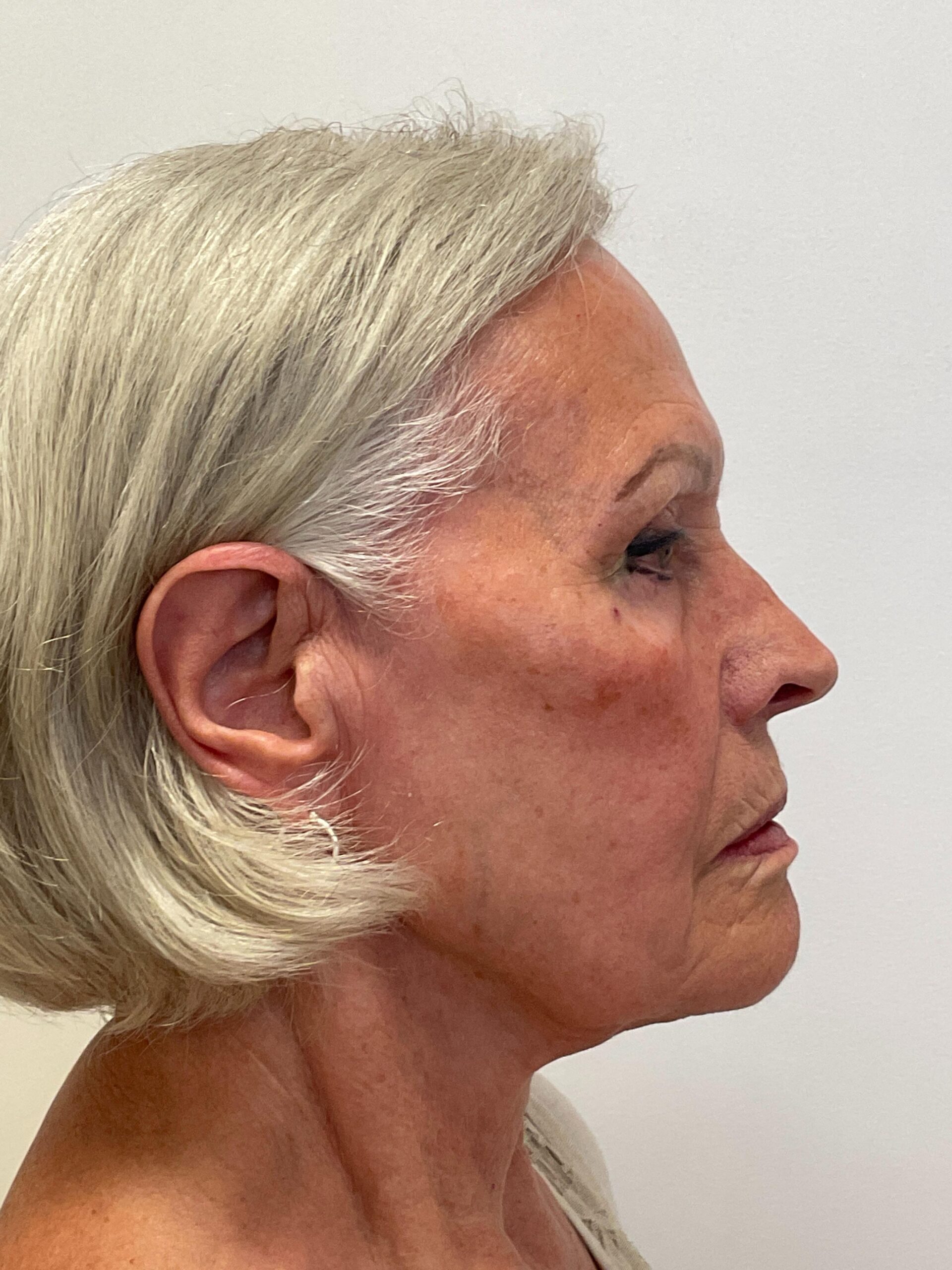 This patient came to see us with concerns about a tired and aged appearance. We wanted to achieve a total facial rejuvenation while addressing sagging jowls, soft tissue descent, and moderate crow’s feet. Her treatment plan included: