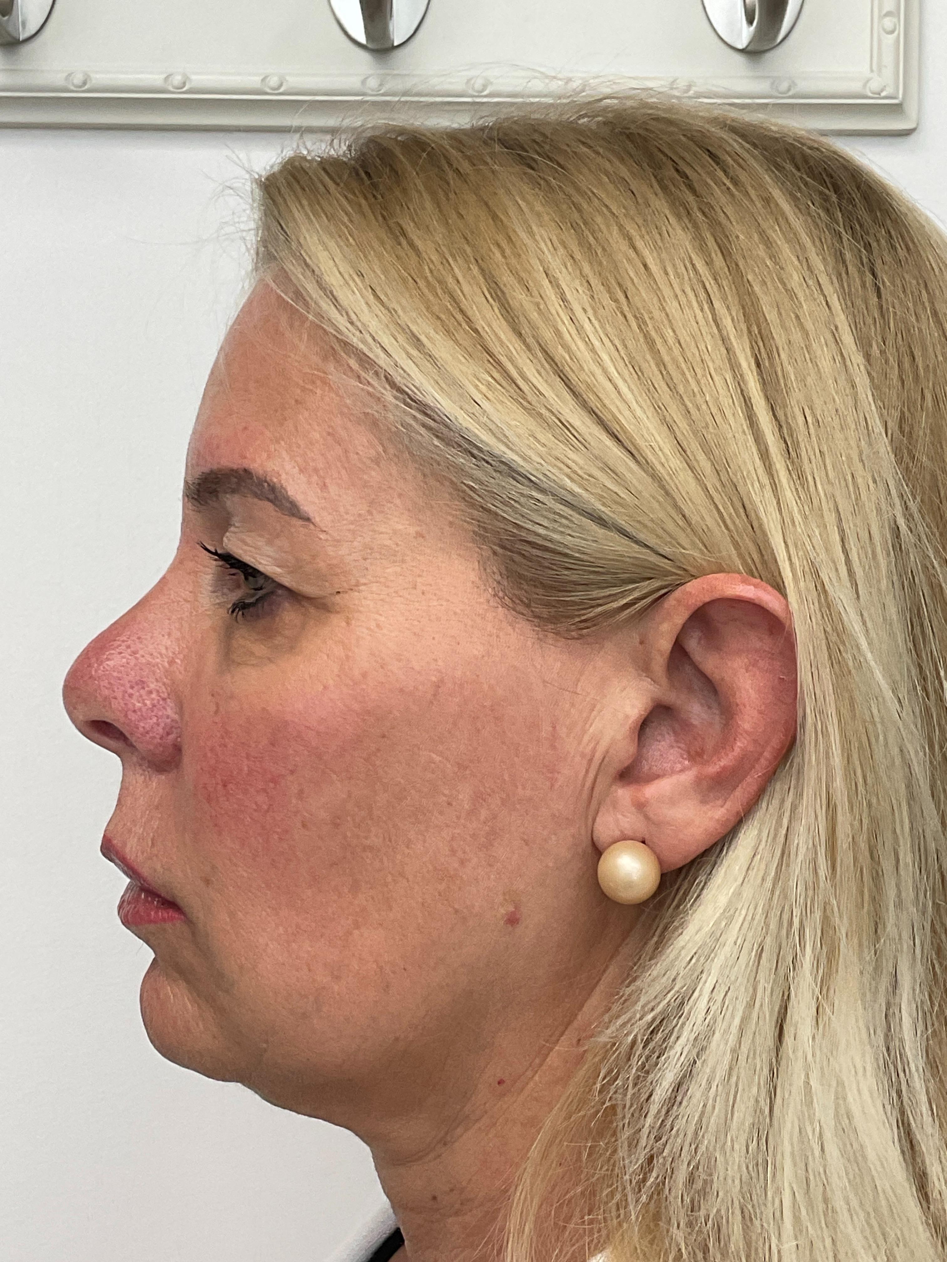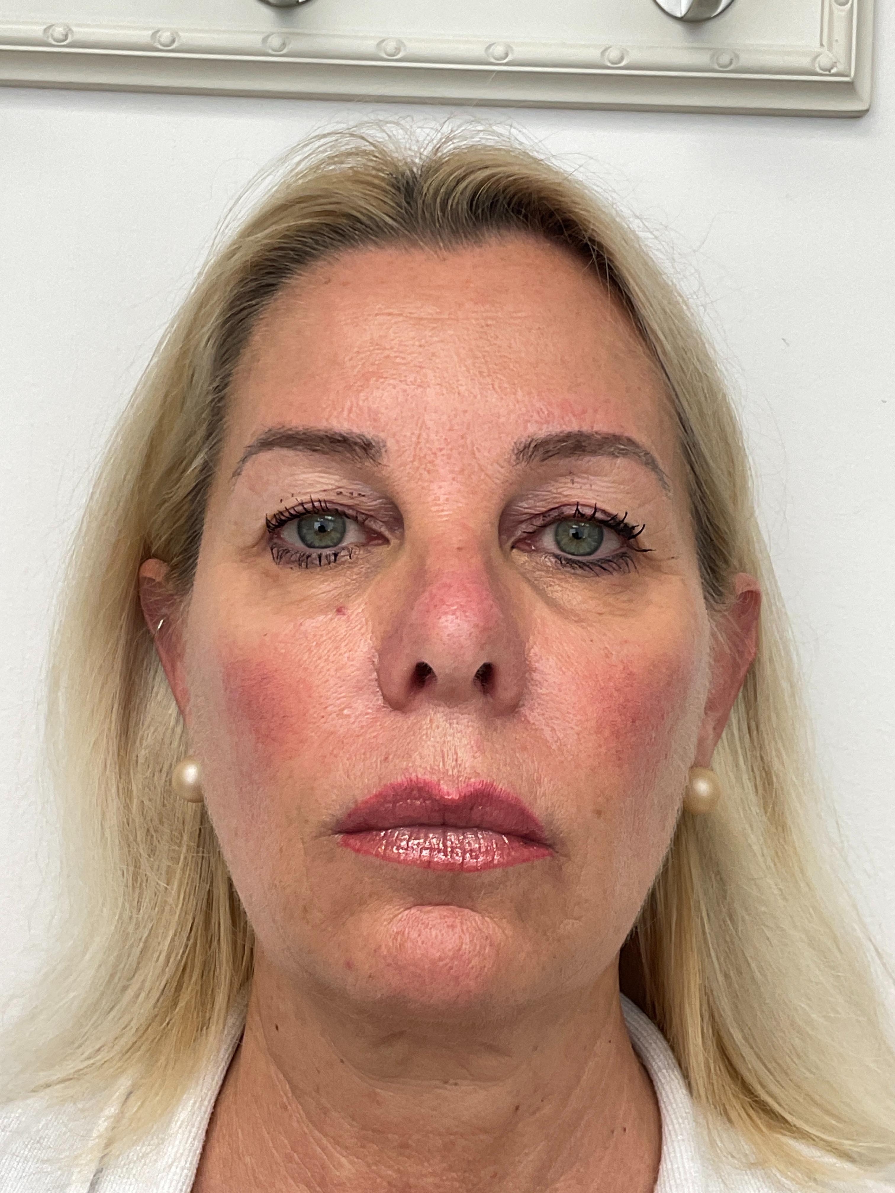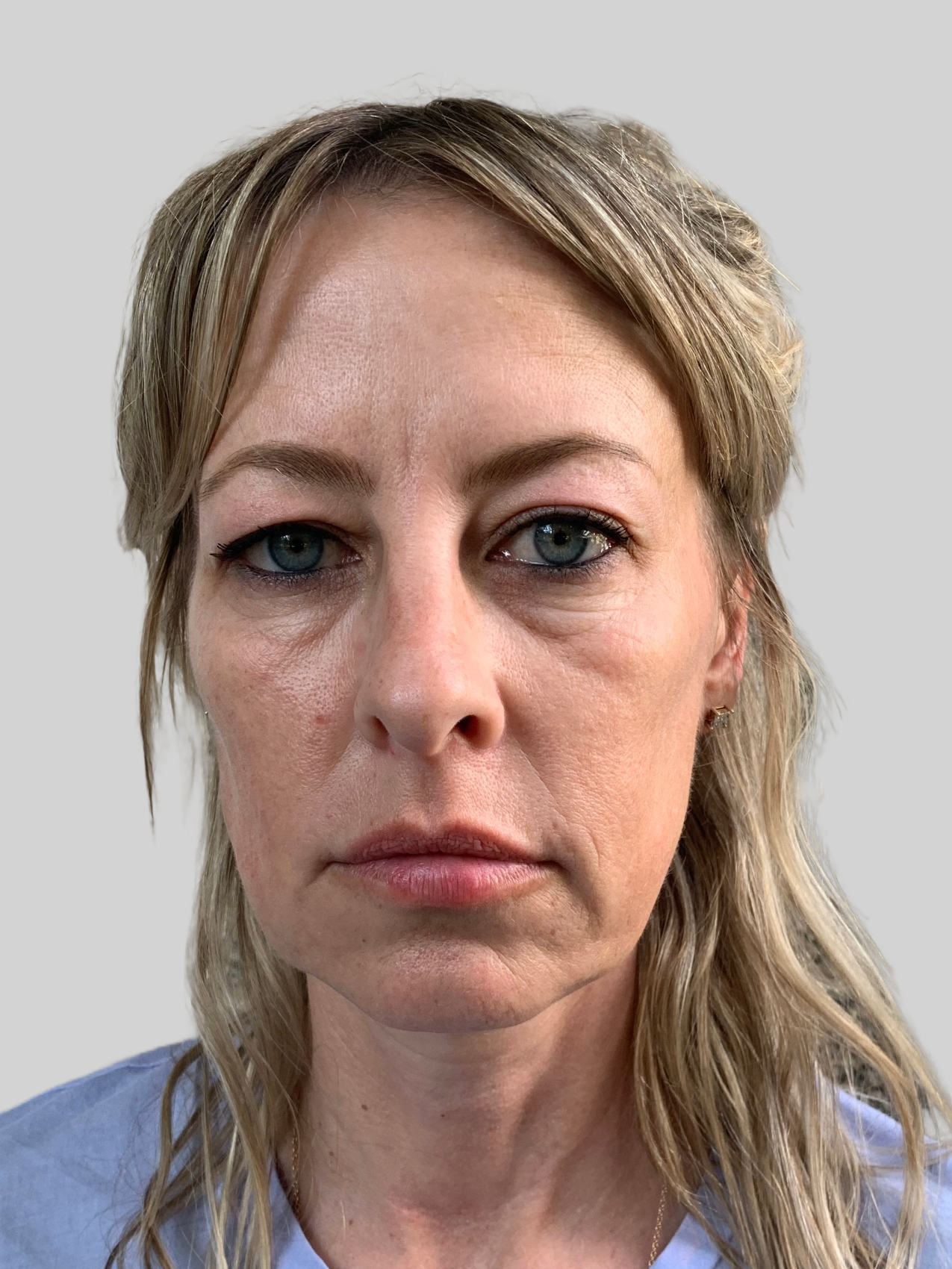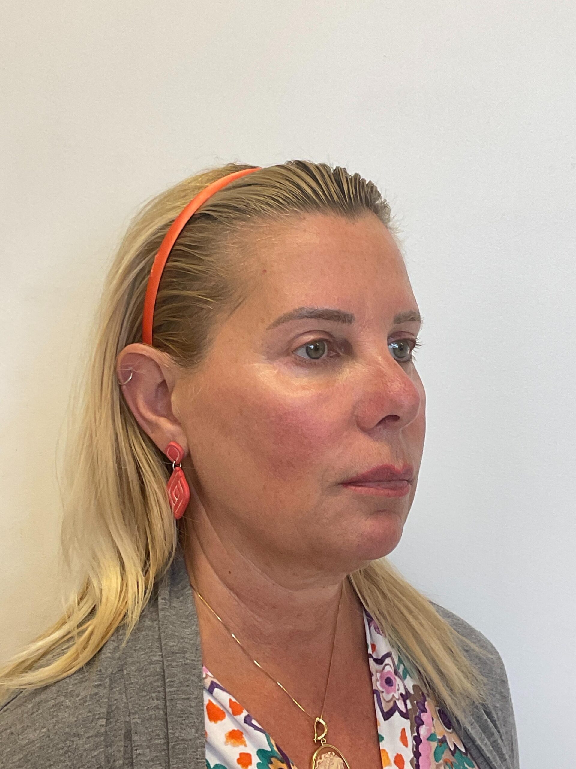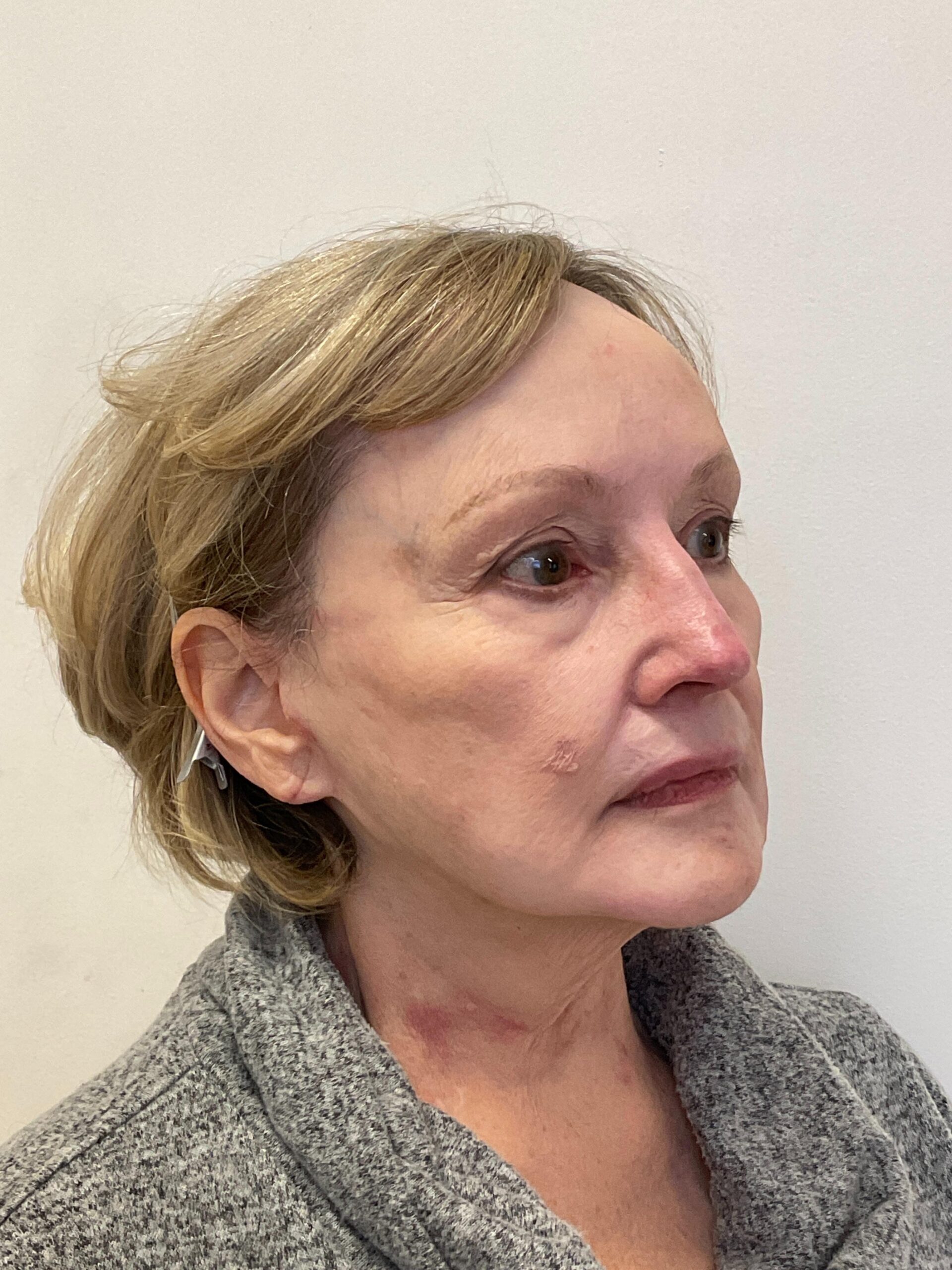 This patient came to see us with concerns about a tired and aged appearance. We wanted to achieve a total facial rejuvenation while addressing sagging jowls, soft tissue descent, and moderate crow’s feet. Her treatment plan included: