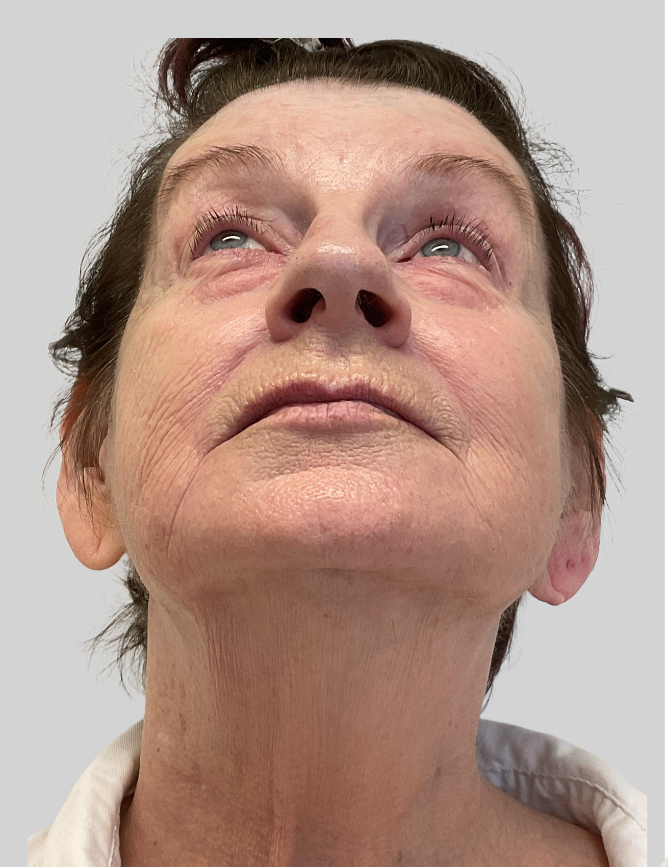 This patient’s upper blepharoplasty removed the excess skin that was hanging over and hiding her eyes, leaving her with a much more refreshed appearance.