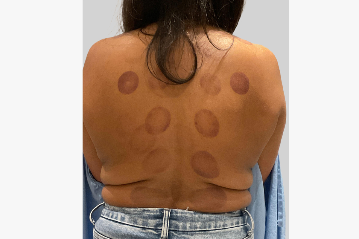 This patient underwent a thigh lift with a vertical incision as well as a posterior body lift.