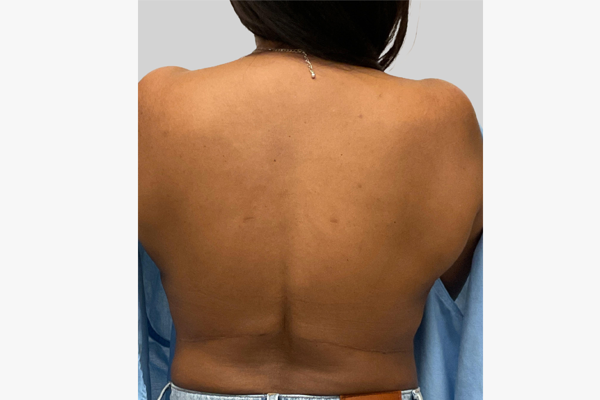This patient underwent a drain-free tummy tuck with triple layer muscle repair, resulting in a smooth and flat abdomen.