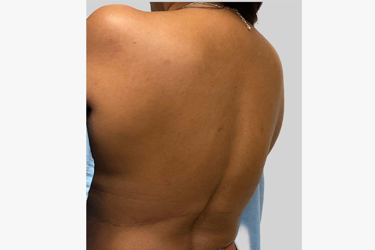 This patient underwent an abdominoplasty with contouring liposuction of the flanks.