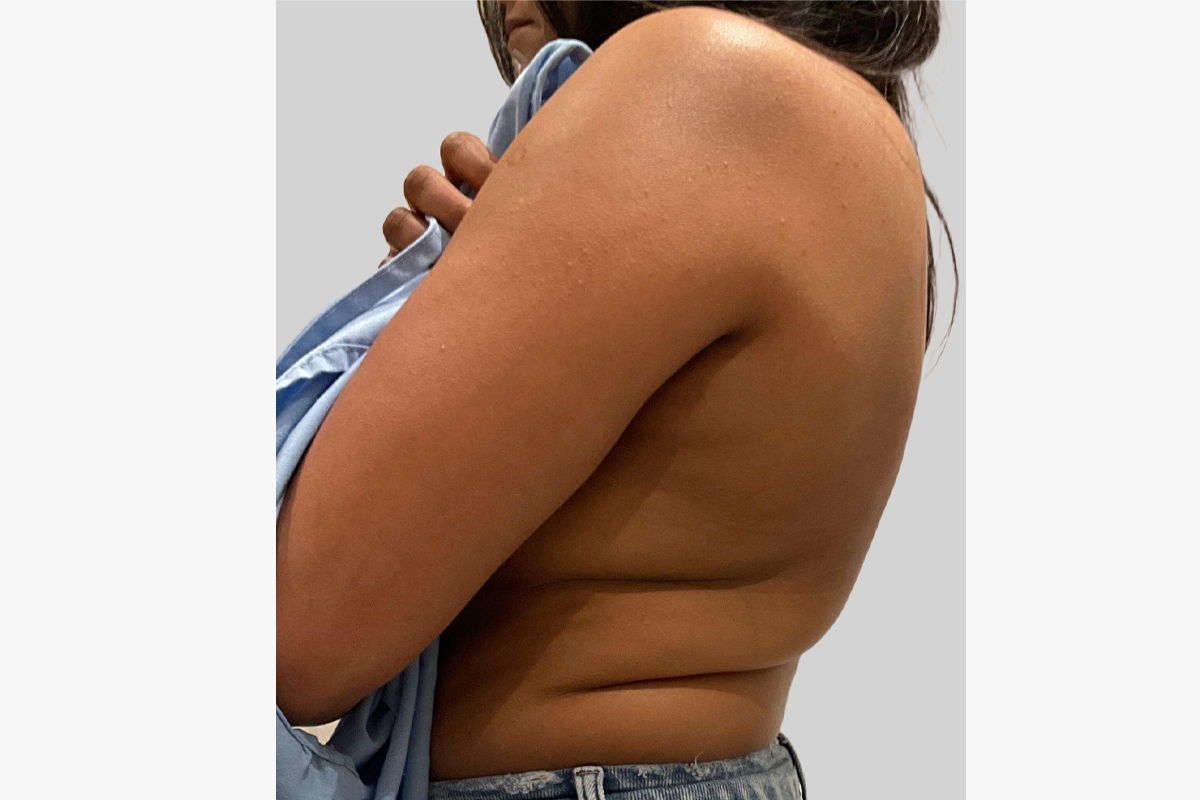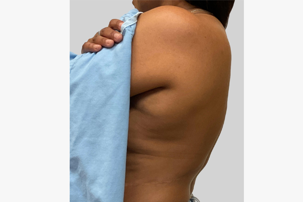 This patient underwent a full brachioplasty (arm lift) to remove excess tissue from the arms.